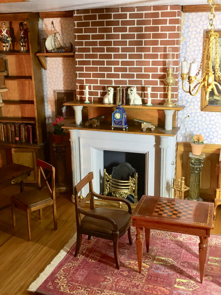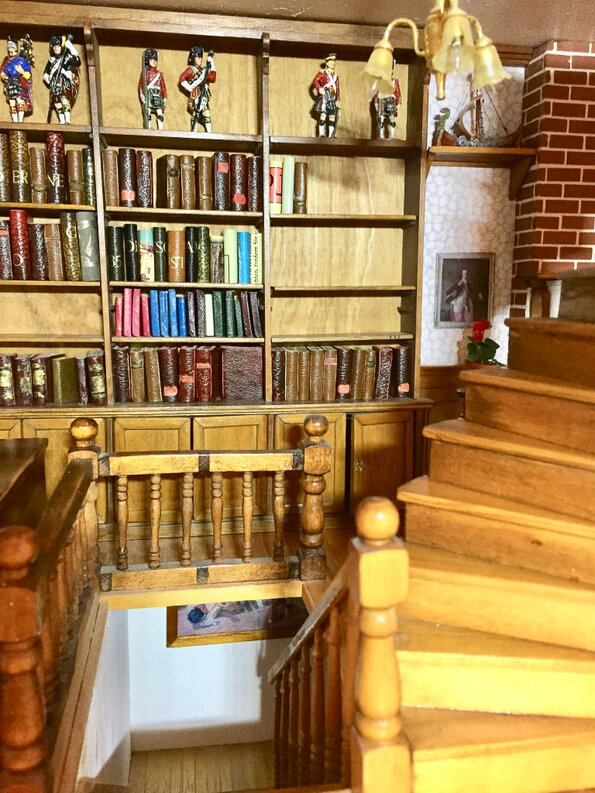 Tin soldiers hand-painted and ships in the wall of books